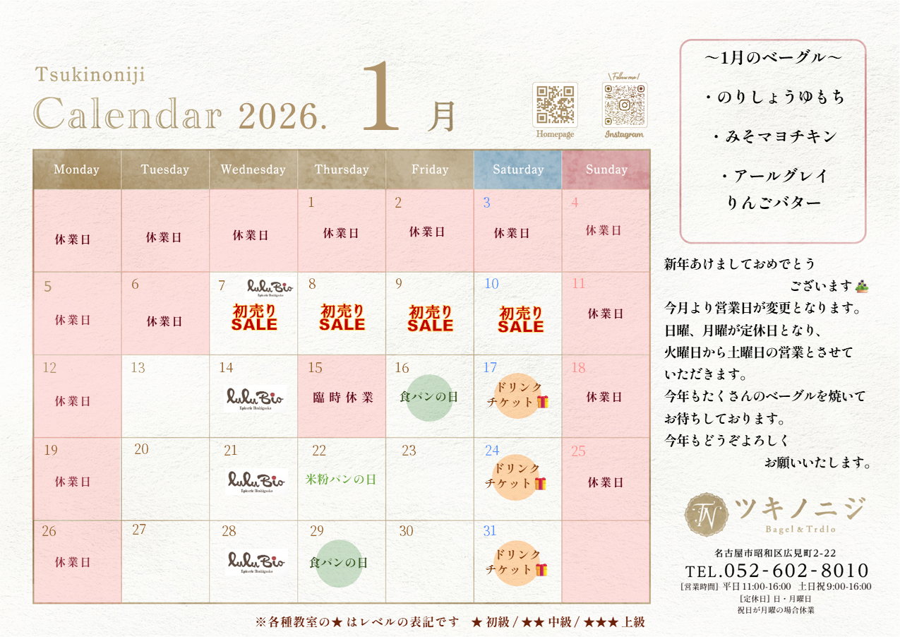 1月のベーグルはこちらの3種です。